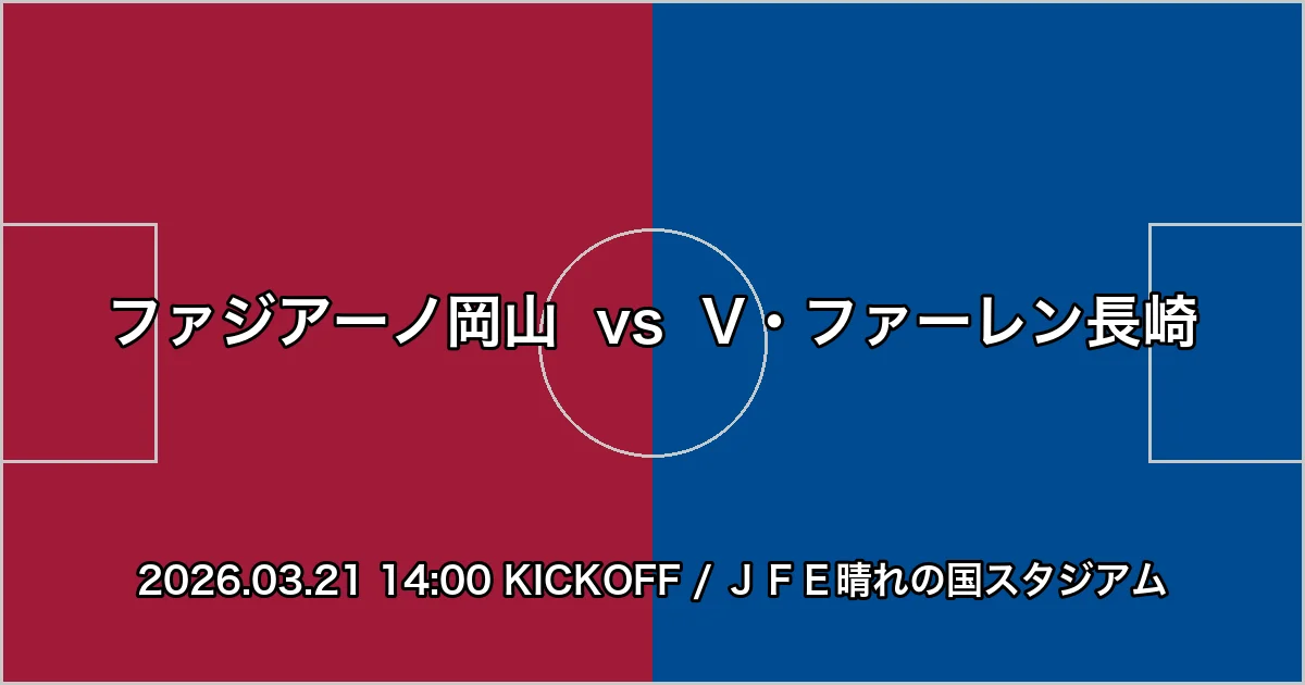 J1-WEST2026年3月17日ファジアーノ岡山 vs V・ファーレン長崎 試合展望(2026年3月21日)