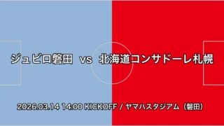 EAST-B ジュビロ磐田 vs 北海道コンサドーレ札幌 試合展望(2026年3月14日) 戦力比較から、ジュビロ磐田が優位と見られる。ホームでの強さが光る磐田は、ヤマハスタジアムでの開催がホームアドバンテージとなるだろう。 2026.03.13 EAST-B明治安田Jリーグ百年構想リーグ